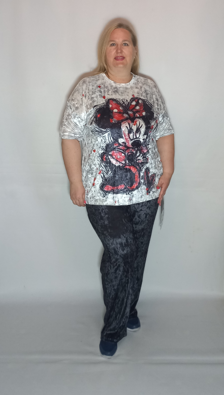 Брюки выполнены из мраморного велюра. Ткань средней плотности, эластичная, очень приятная к телу.