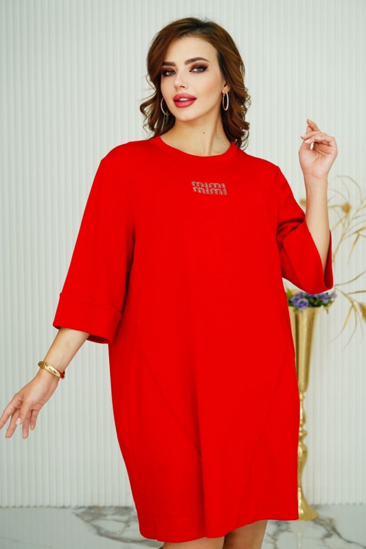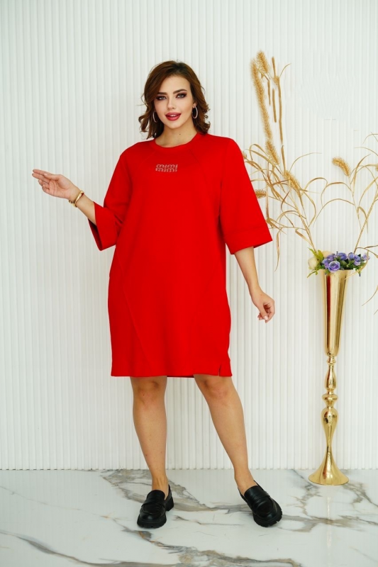 Лаконичное, но элегантное платье туника выполнено из плотного трикотажа. Трикотаж очень приятный  наощупь, плотненький, хорошо скрывает шероховатости фигуры, эластичный.