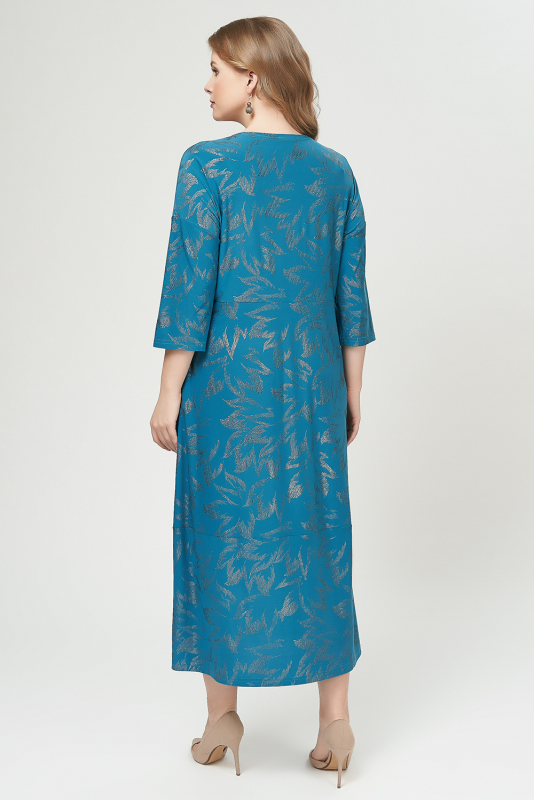 Модель миди-длины, с округлым глубоким вырезом, втачными рукавами 3/4 со спущенной проймой и мягкой линией плеча, врезными боковыми карманами.