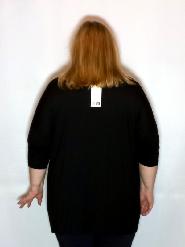 Спинка без дополнительных швов и деталей, длиннее полочки на 4 см.